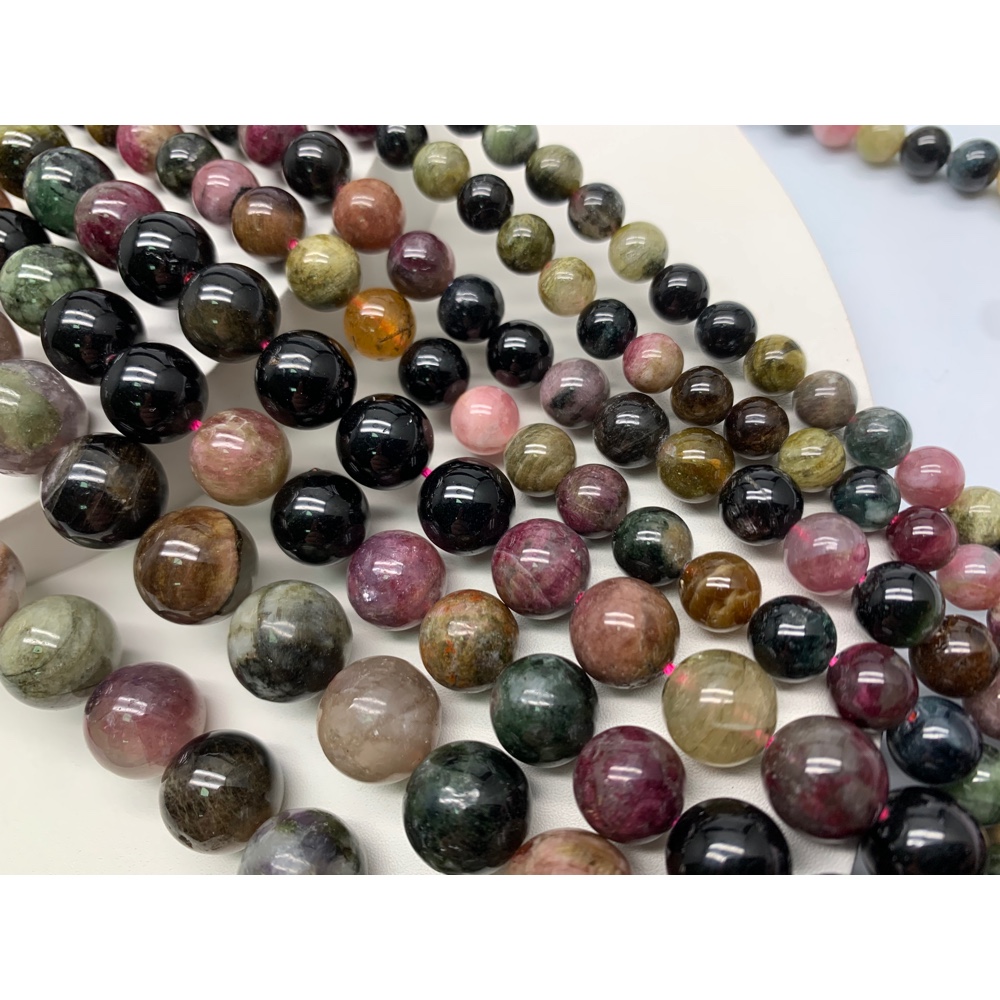 Каменные бусины, Турмалин, микс, шарик гладкий, 12-12,5 мм, длина нити 20 см