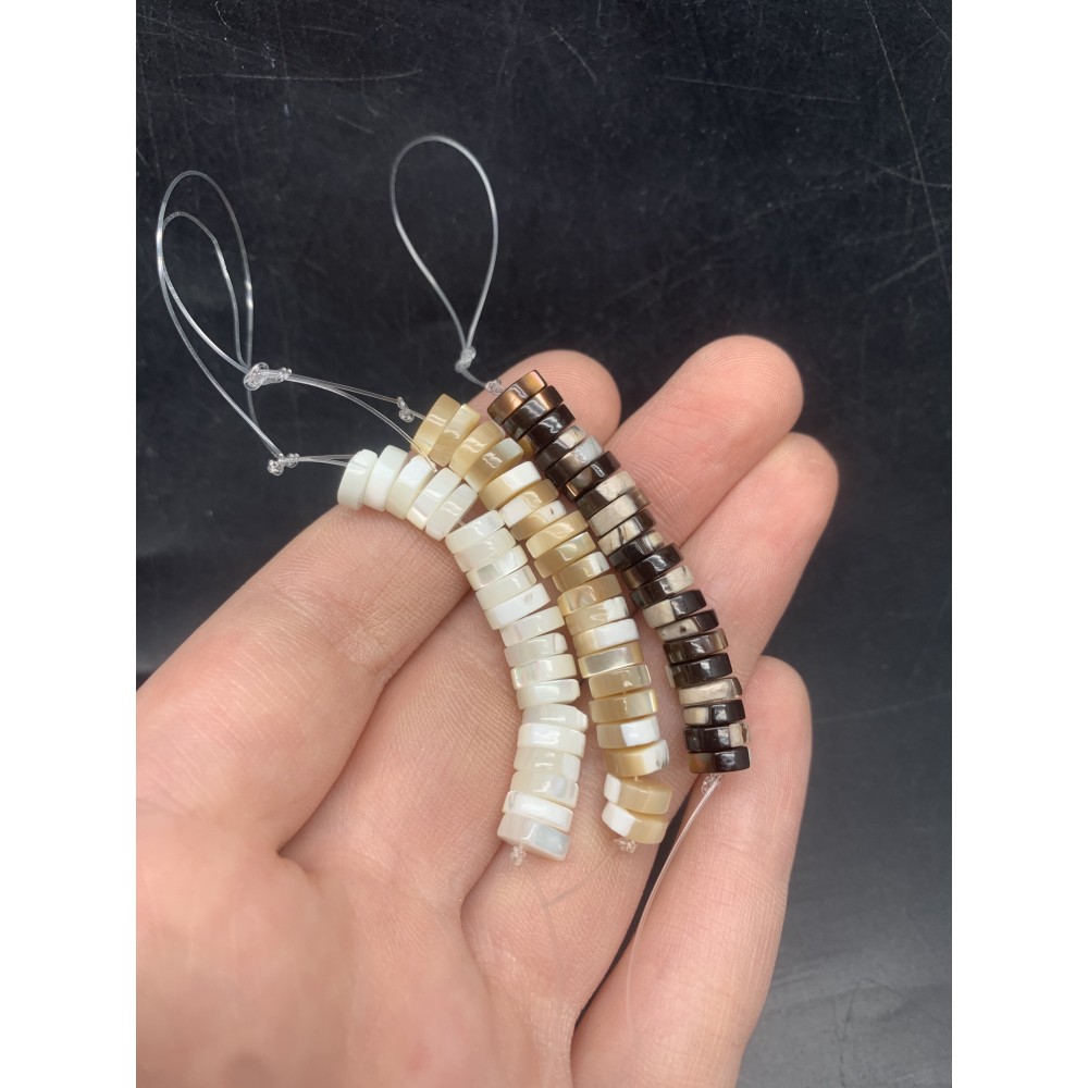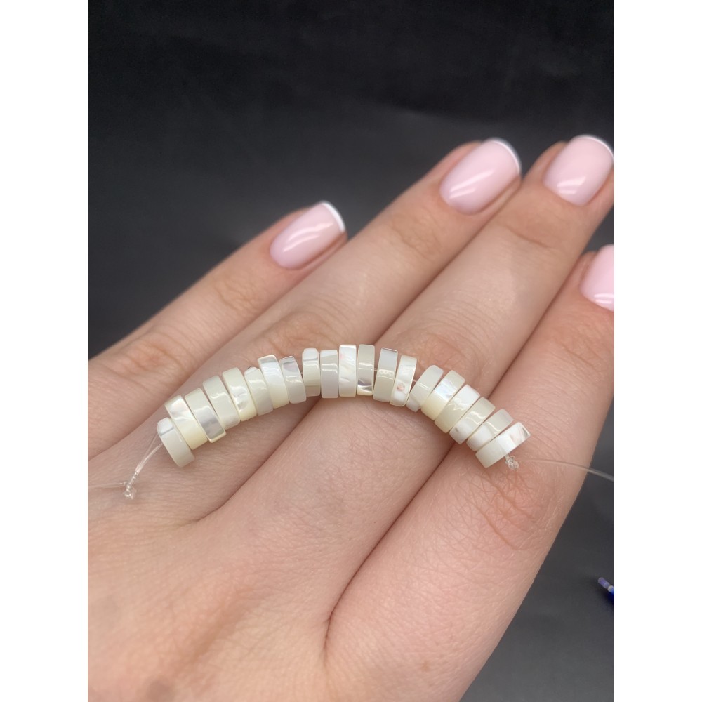 • Каменные бусины, Перламутр, белый, шайба, 8х2 мм, длина нити 5 см, 20 бусин