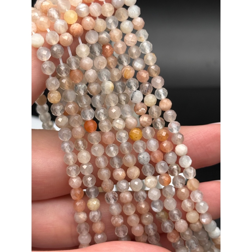 • Каменные бусины, Лунный + Солнечный камень (олигоклаз), микс, шарик огранка, 4 мм, длина нити 38 см
