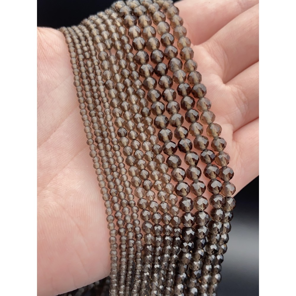 Теги: Каменные бусины, Раухтопаз, Дымчатый Кварц, шарик огранка, 2 мм, длина нити 38 см, 14185, Бусины в огранке 2-4 мм