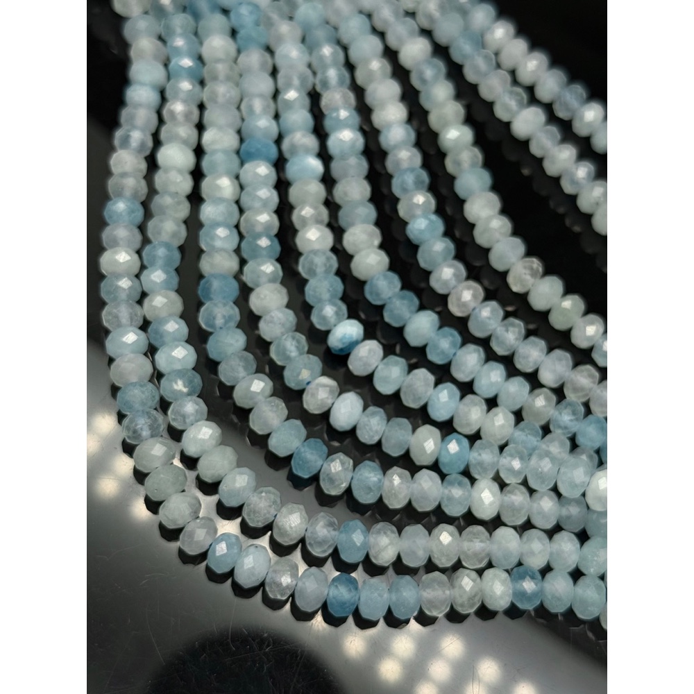 Теги: Каменные бусины, Аквамарин, Голубой Берилл, рондель огранка, 6х4 мм, длина нити 38 см, 15256, Бусины в огранке рондель