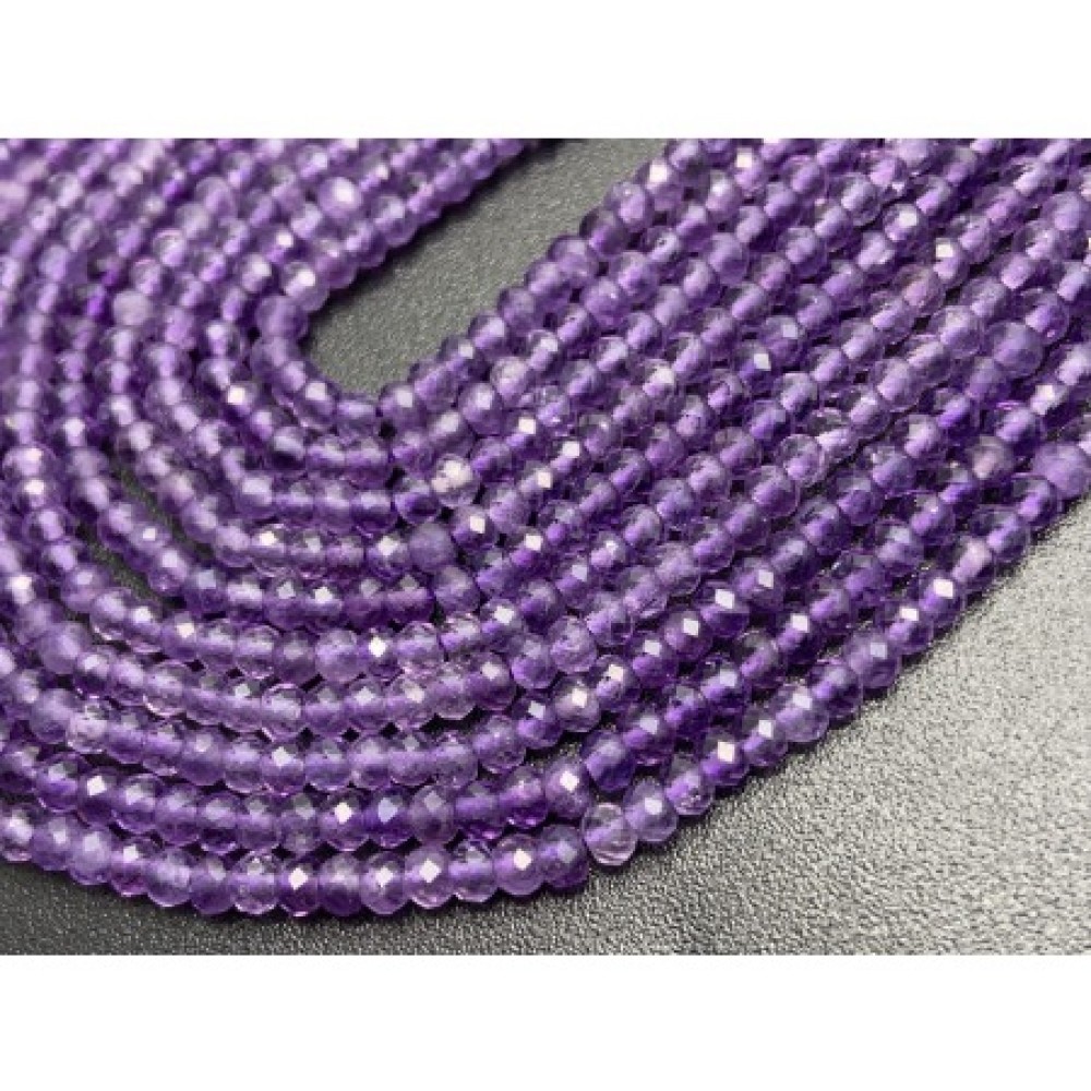 • Каменные бусины, Аметист, огранка, рондель 2х3 мм, длина нити 38 см
