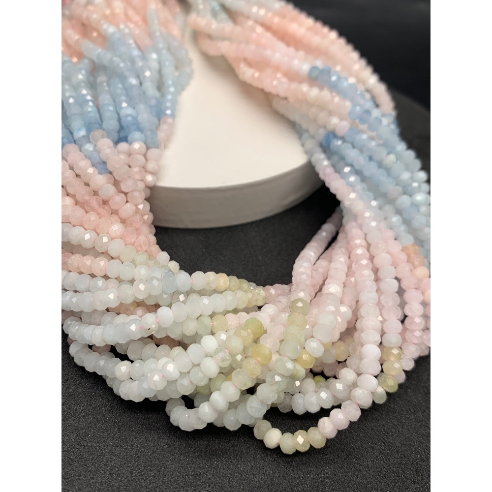 • Каменные бусины, Берилловый Микс, рондель, огранка, 4х3 мм, длина нити 38 см