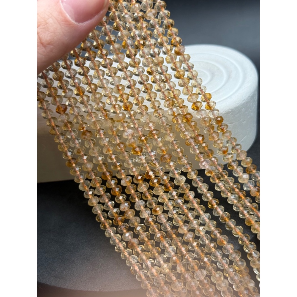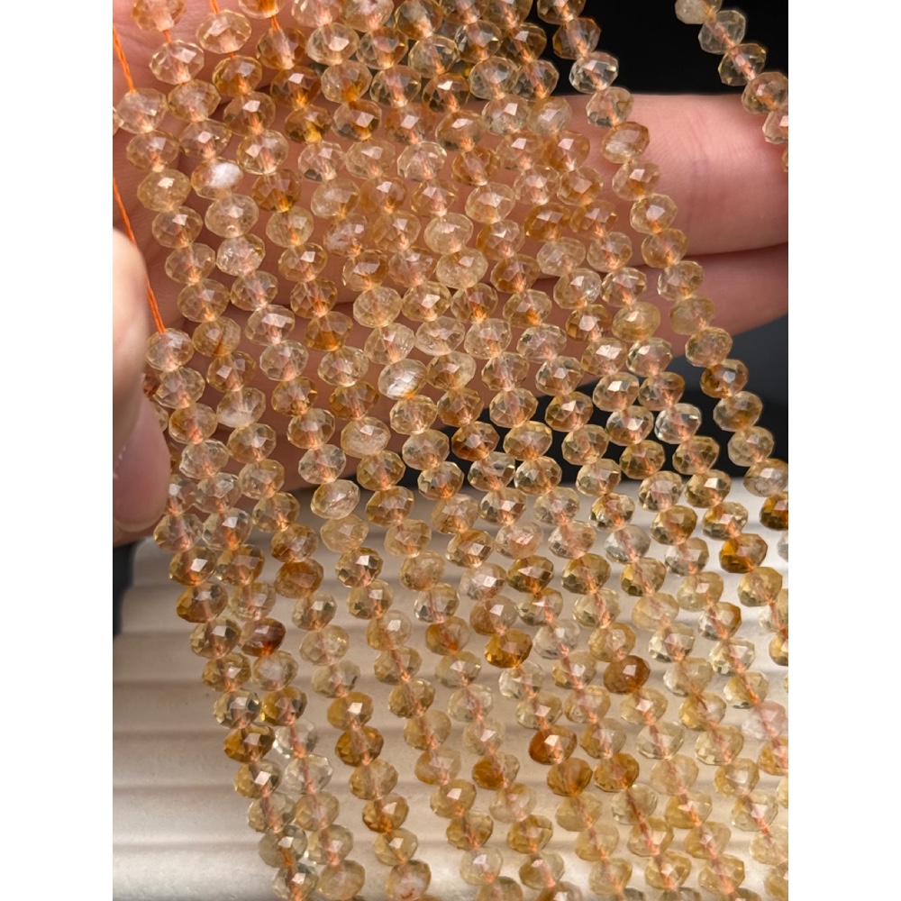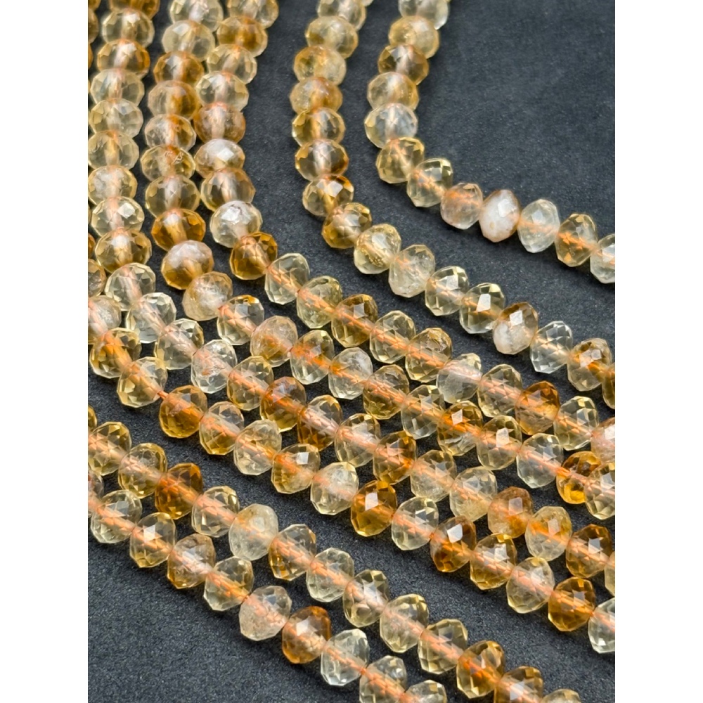 • Каменные бусины, Цитрин, люкс, огранка, рондель, 5х3,5мм, длина нити 38 см