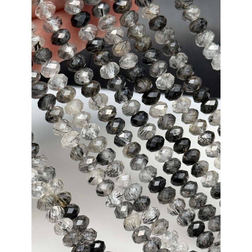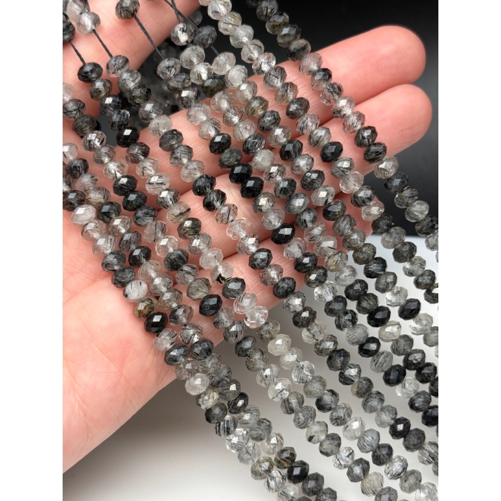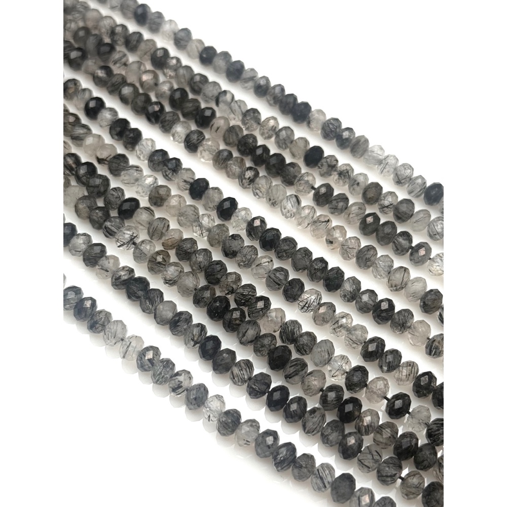 Каменные бусины, Турмалиновый кварц, люкс, рондель, огранка, 6х4 мм, длина нити 39 см