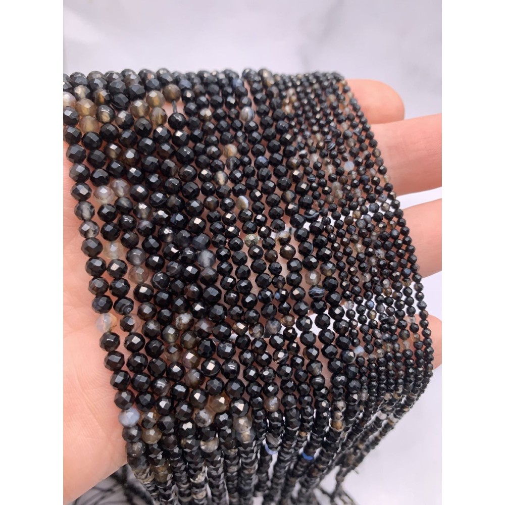 Каменные бусины, Агат чёрный, с полосками, шарик огранка, 2 мм, длина нити 38 см