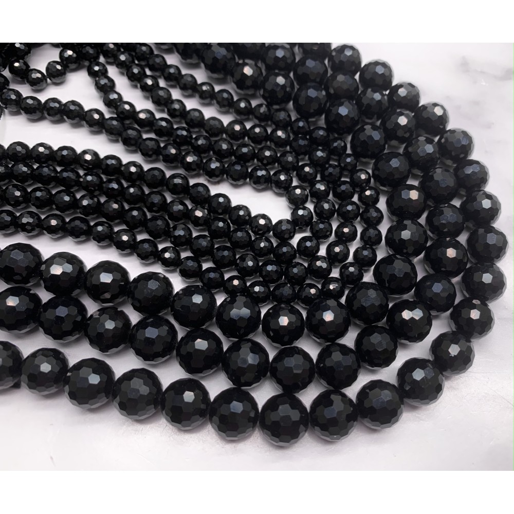 • Каменные бусины, Агат, чёрный, шарик, ювелирная огранка, 10 мм, длина нити 38 см