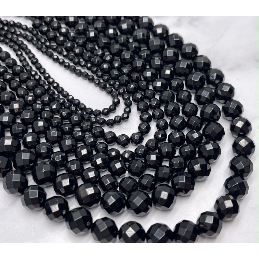 Каменные бусины, Агат, чёрный, шарик огранка, 8 мм, длина нити 38 см