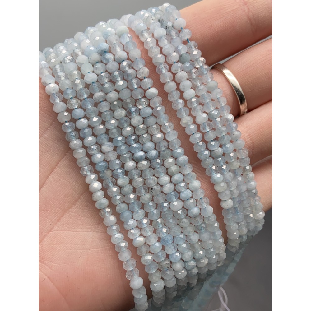 • Каменные бусины, Аквамарин, Голубой Берилл, рондель огранка, 2х3,5 мм, длина нити 38 см