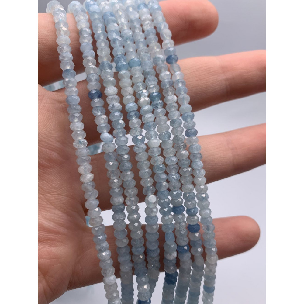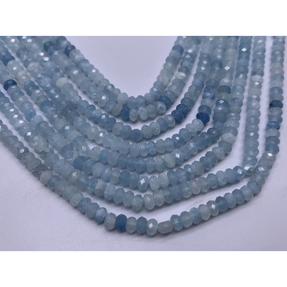 • Каменные бусины, Аквамарин, Голубой Берилл, рондель огранка, 4х3 мм, длина нити 38 см