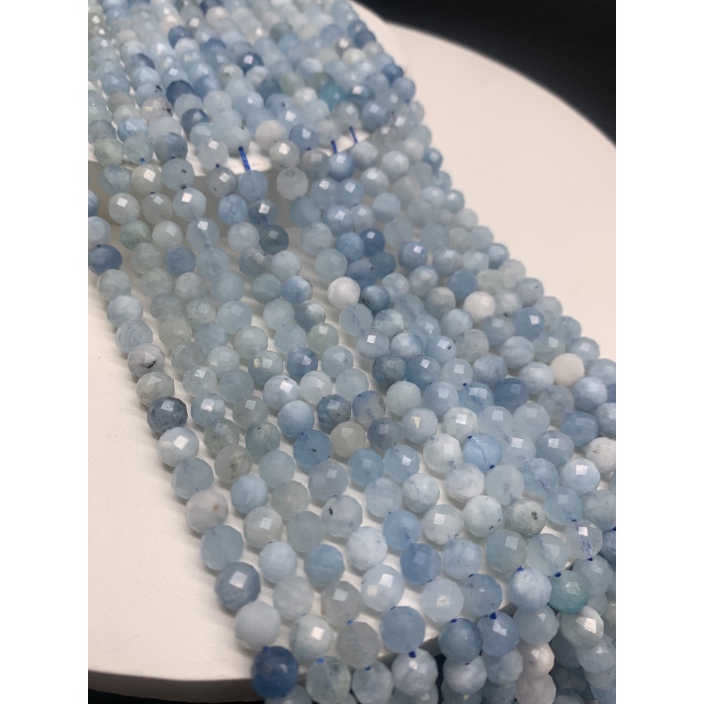 Каменные бусины, Аквамарин, Голубой берилл, шарик огранка, 8 мм, длина нити 38 см