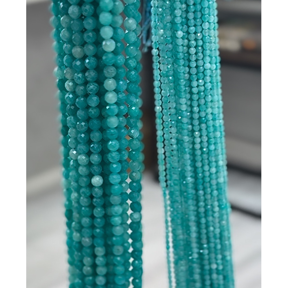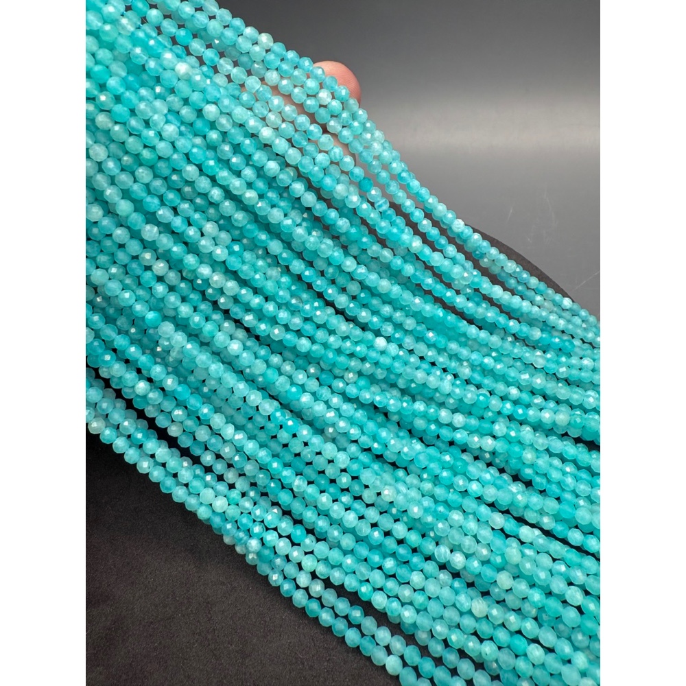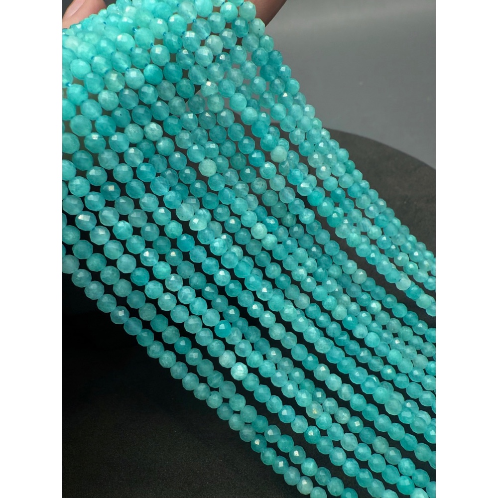 Каменные бусины, Амазонит, люкс, шарик огранка, 3 мм, длина нити 38 см