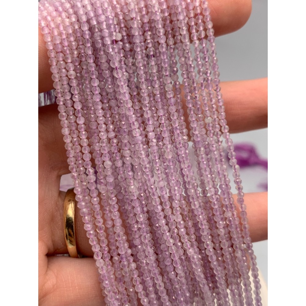 Каменные бусины, Аметист, лавандовый, шарик огранка, 2 мм, длина нити 38 см