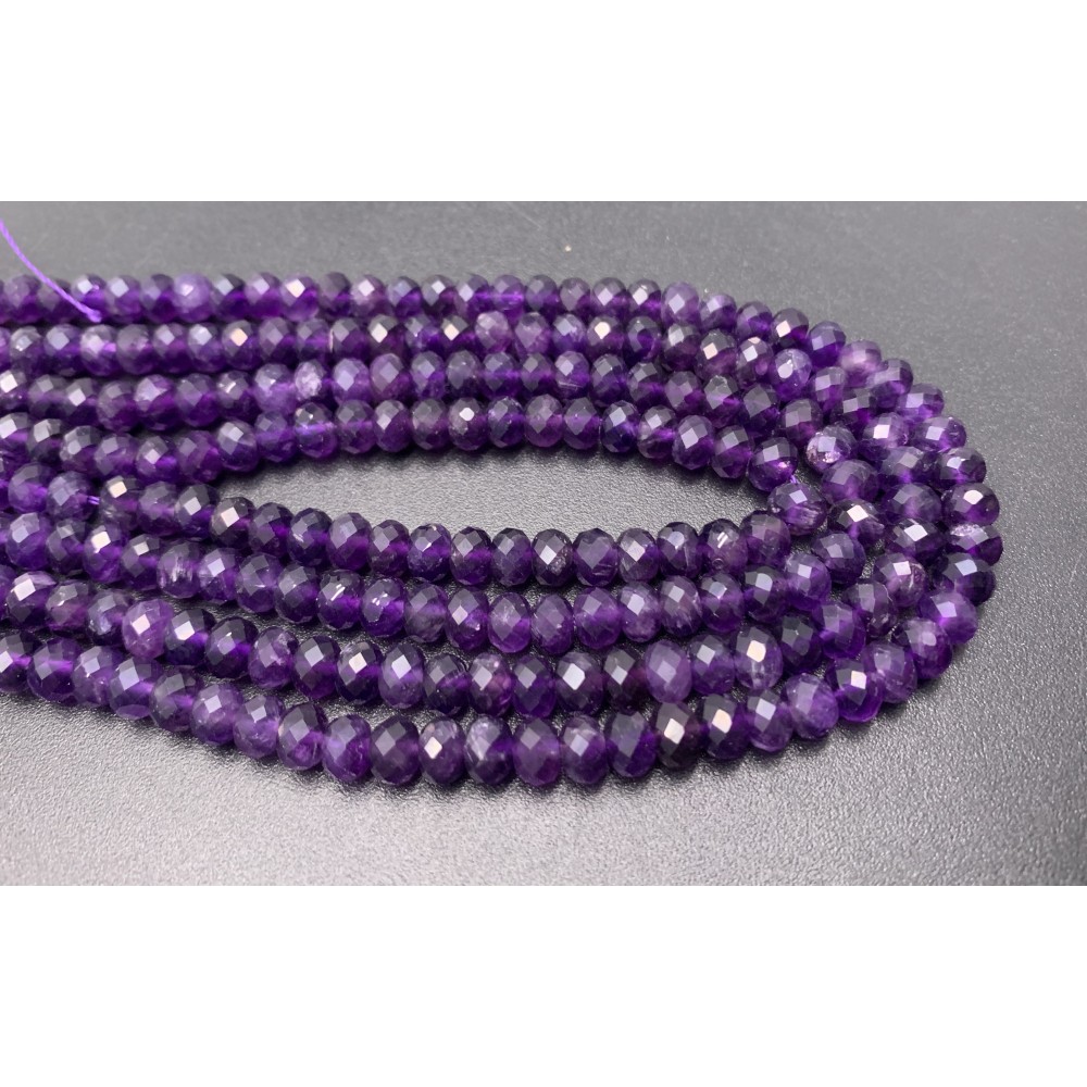 • Каменные бусины, Аметист, люкс, огранка, рондель, 6x4 мм, длина нити 38 см