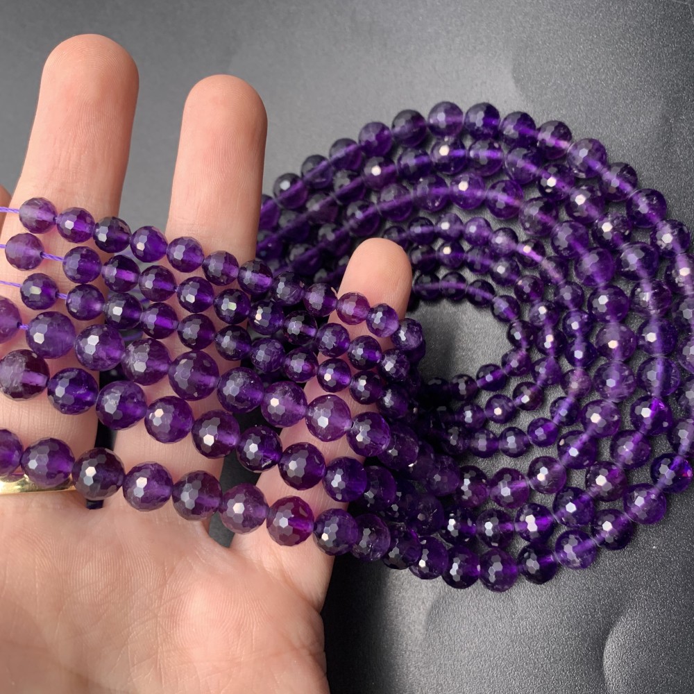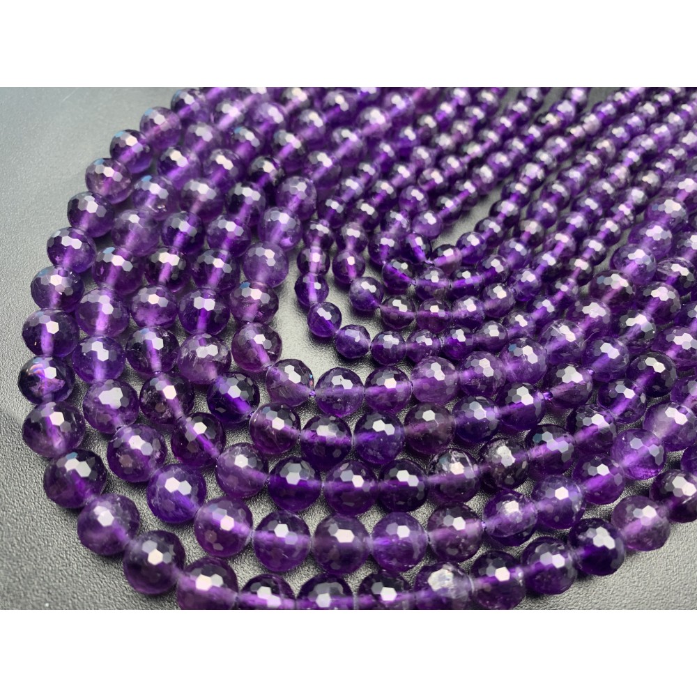 Каменные бусины, Аметист, люкс, шарик, огранка, 6 мм, длина нити 38 см