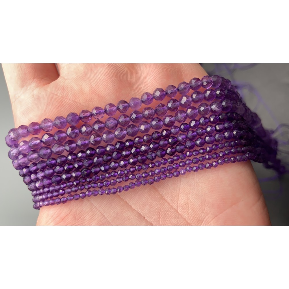Теги: Каменные бусины, Аметист, шарик огранка, 4 мм, длина нити 39 см, 13358, Бусины в огранке 2-4 мм