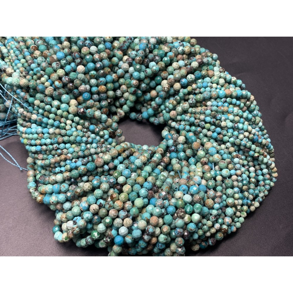 Каменные бусины, Бирюза, Люкс, шарик, огранка, 1,9-2 мм, длина нити 38 см
