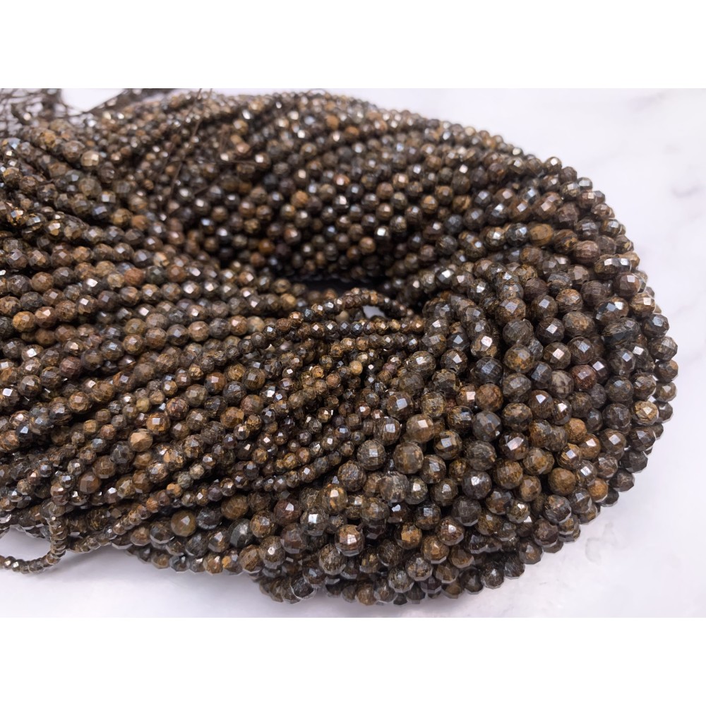 Каменные бусины, Бронзит, шарик огранка, 3 мм, длина нити 38 см