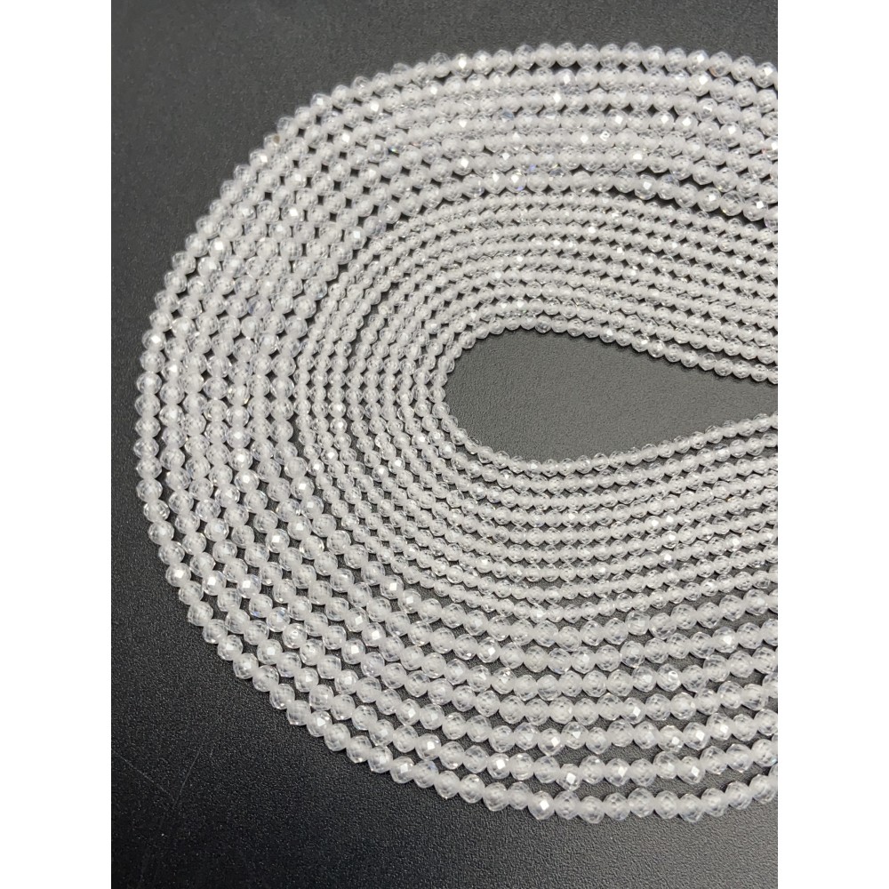 Каменные бусины, Цирконий кубический, (т.н. Циркон), прозрачный кристалл, шарик огранка, 3 мм, длина нити 36 см