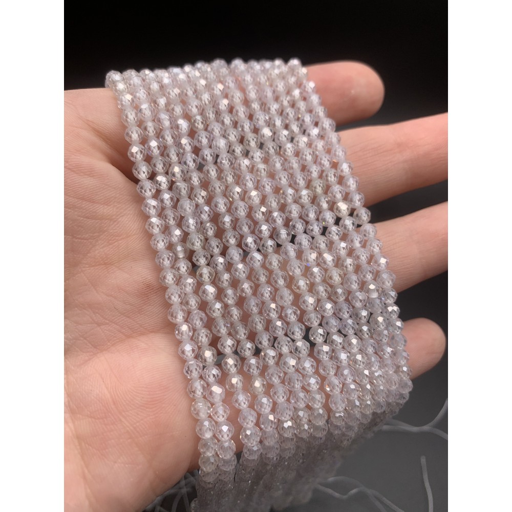 • Каменные бусины, Цирконий кубический, (т.н. Циркон), прозрачный кристалл, шарик огранка, 4 мм, длина нити 38 см