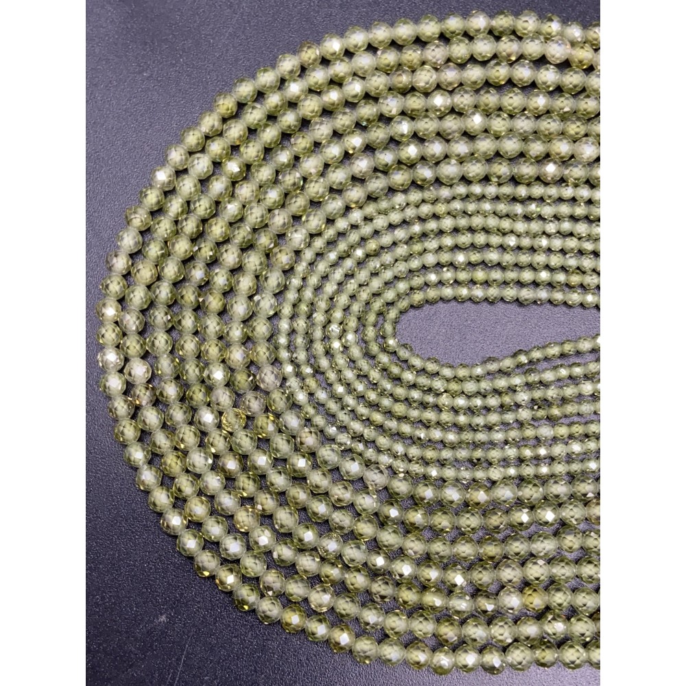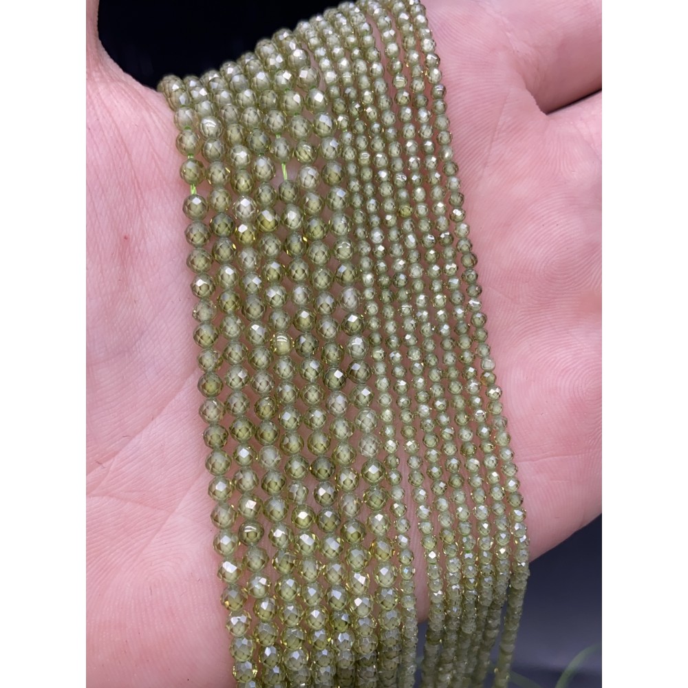 • Каменные бусины, Цирконий кубический, (т.н. Циркон), светло зелёный кристалл, шарик огранка, 2 мм, длина нити 38 см