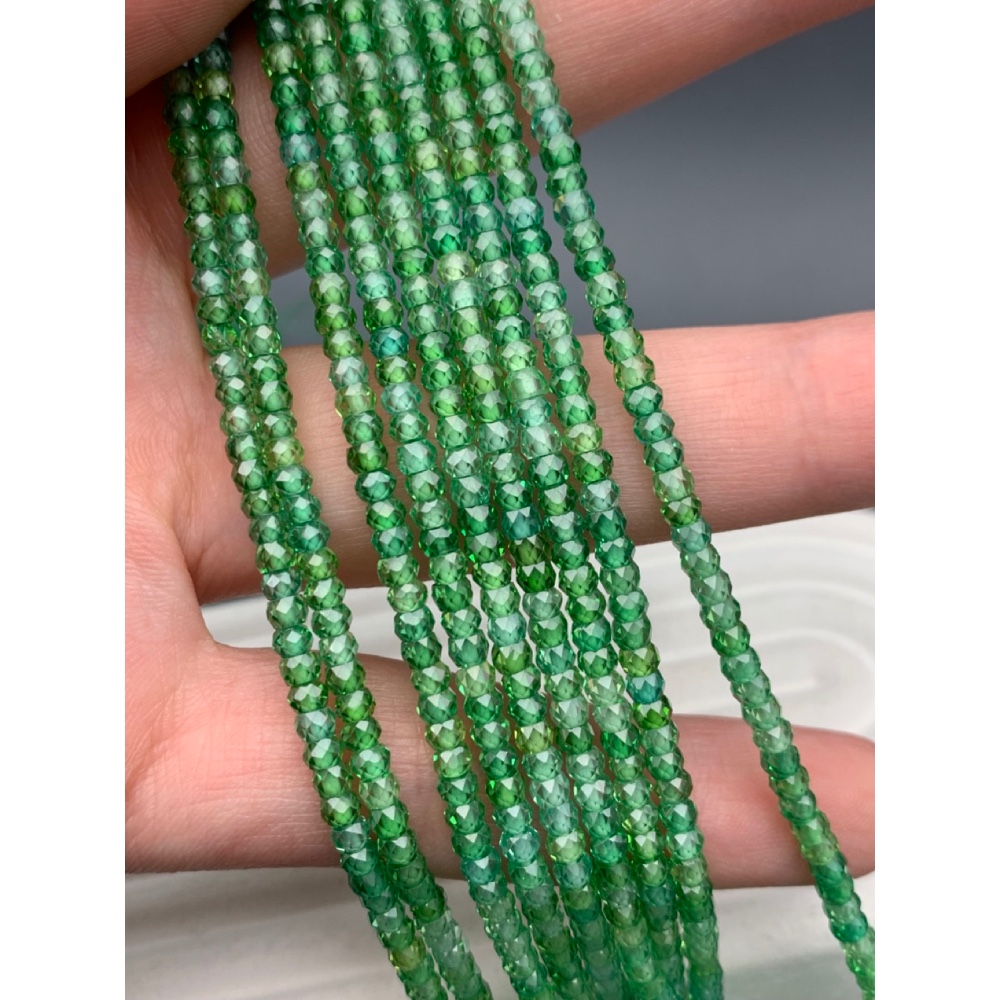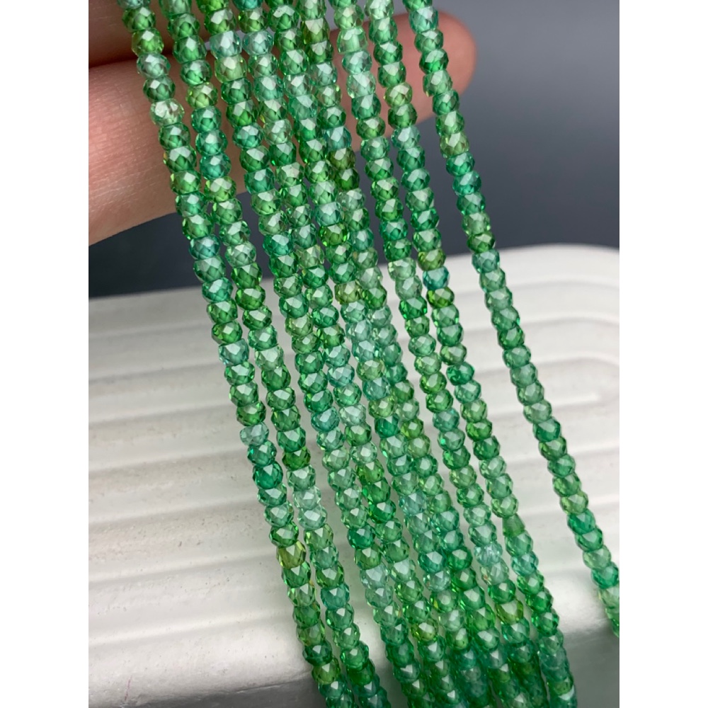 Теги: Каменные бусины, Цирконий кубический, (т.н. Циркон), зелёный кристалл, люкс, рондель, огранка, 3х2 мм, длина нити 38 см, 14713, Бусины в огранке рондель