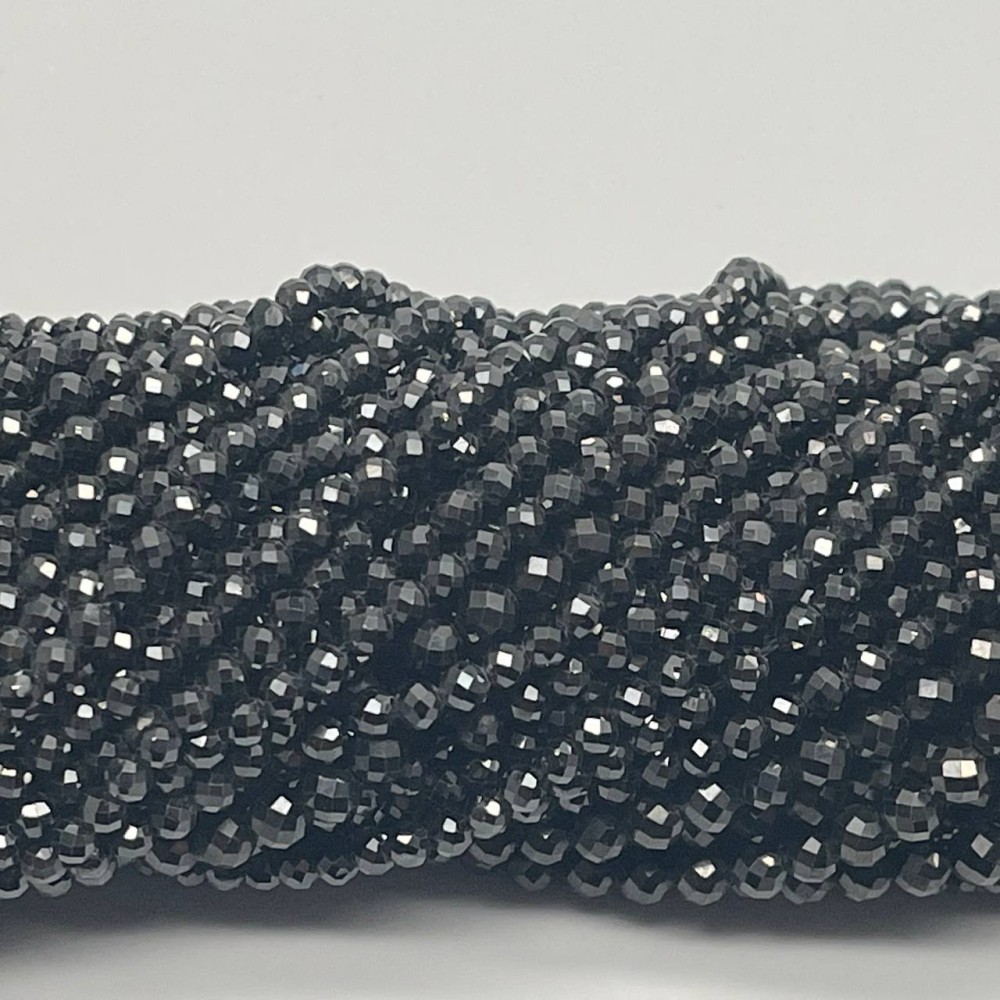 Каменные бусины, Цирконий кубический, (т.н. Циркон), черный кристалл, шарик огранка, 4 мм, длина нити 38 см