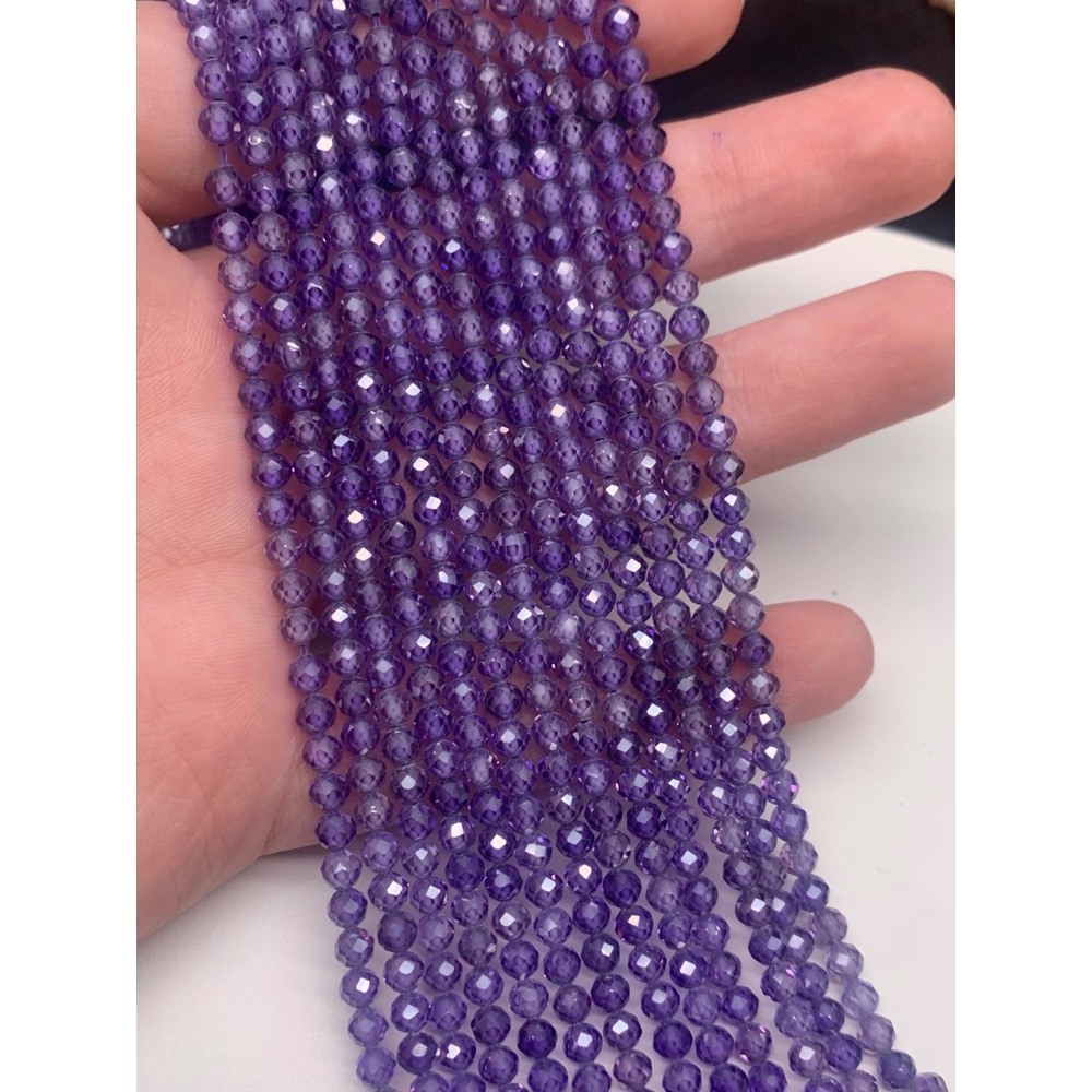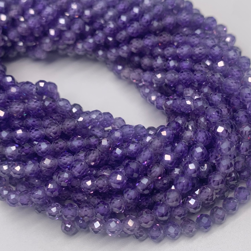 Каменные бусины, Цирконий кубический, (т.н. Циркон), фиолетовый кристалл, шарик огранка, 4 мм, длина нити 38 см