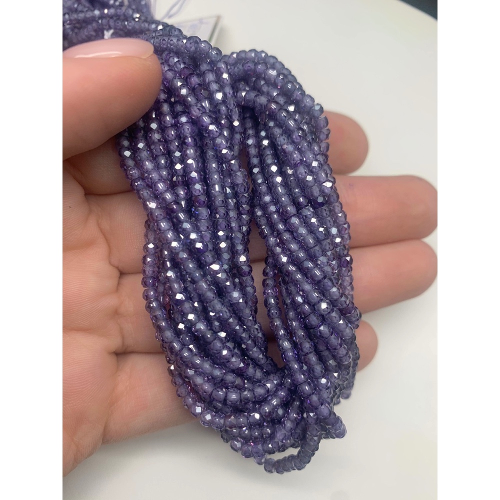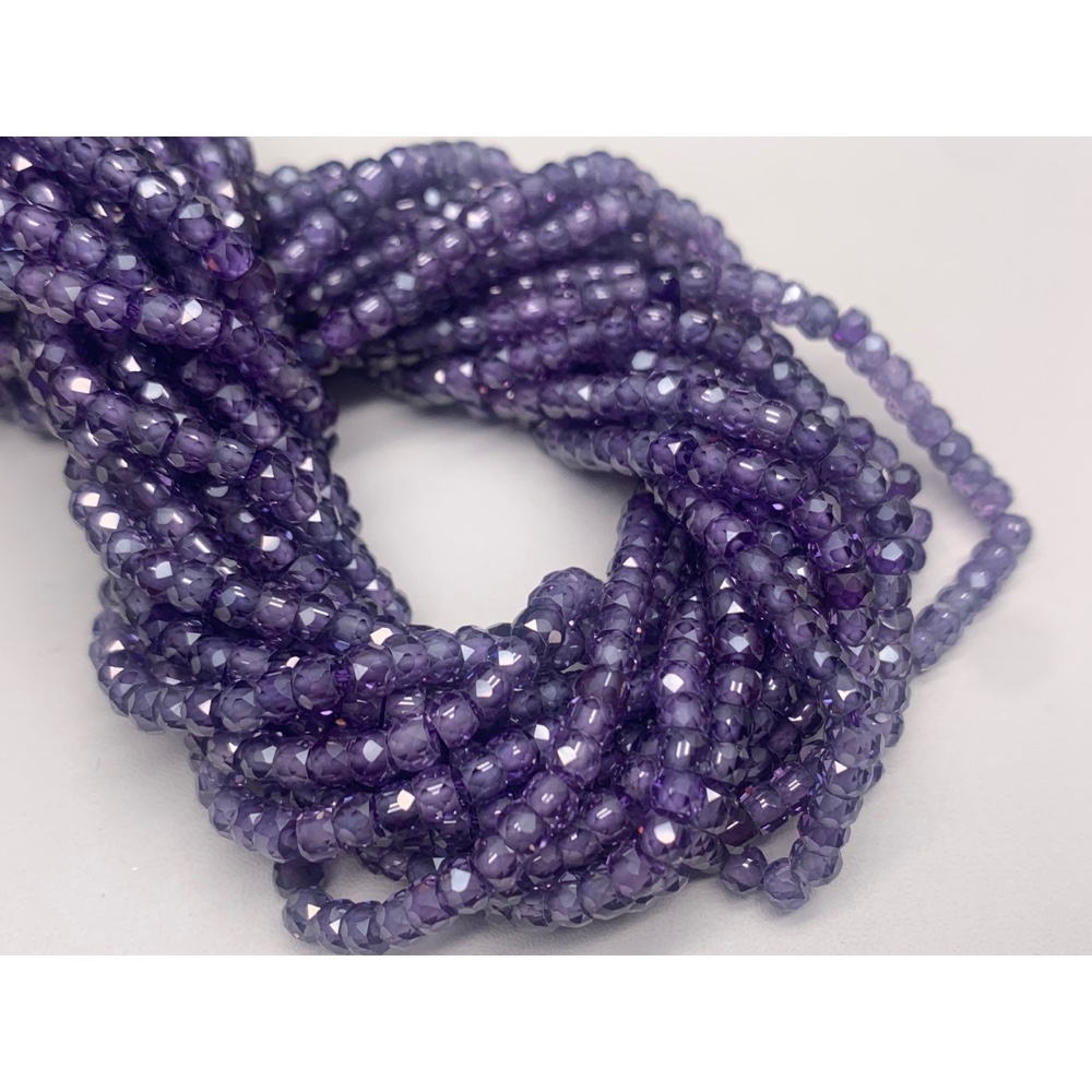 Каменные бусины, Цирконий кубический, (т.н. Циркон), лавандовый кристалл, рондель, огранка, 3х2 мм, длина нити 38 см