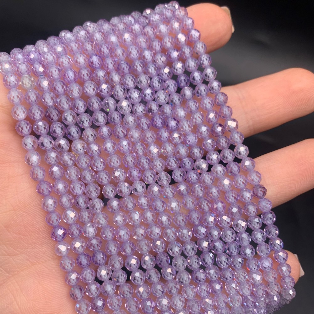 Каменные бусины, Цирконий кубический, (т.н. Циркон), лавандовый кристалл, шарик, огранка, 4 мм, длина нити 38 см