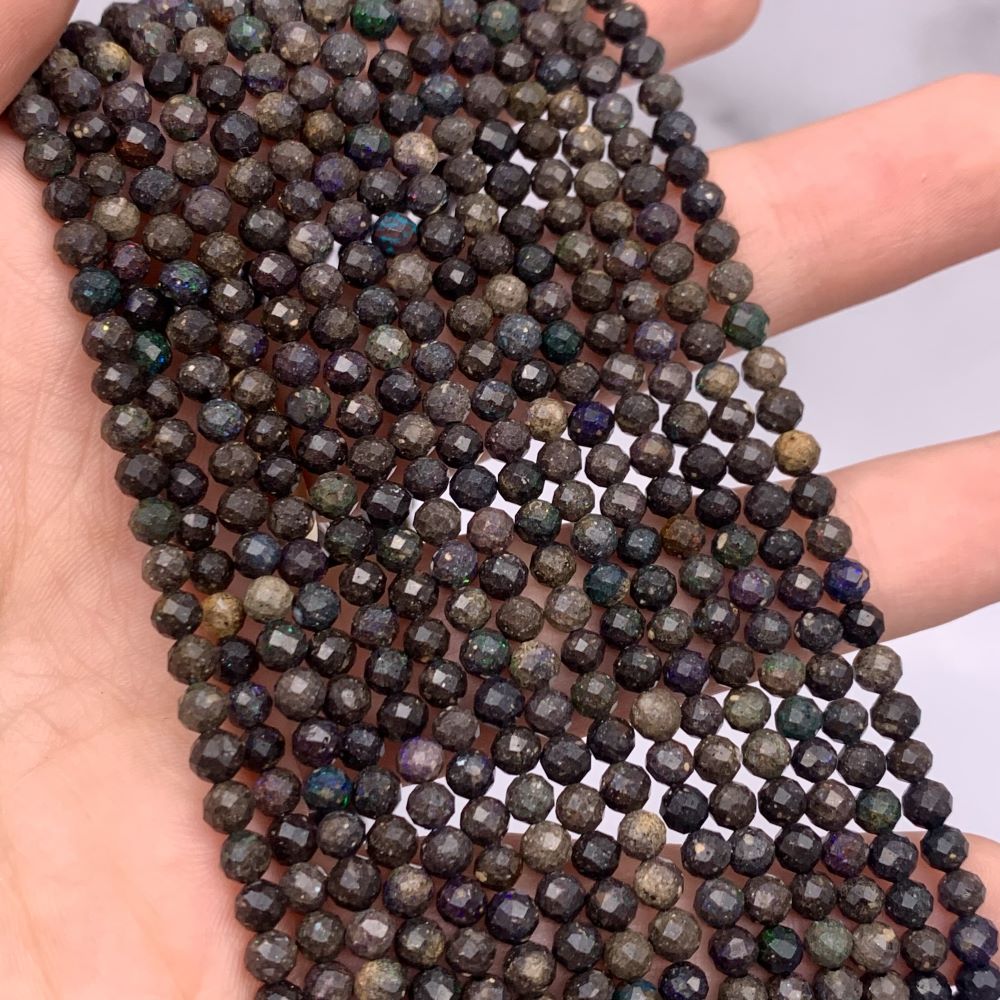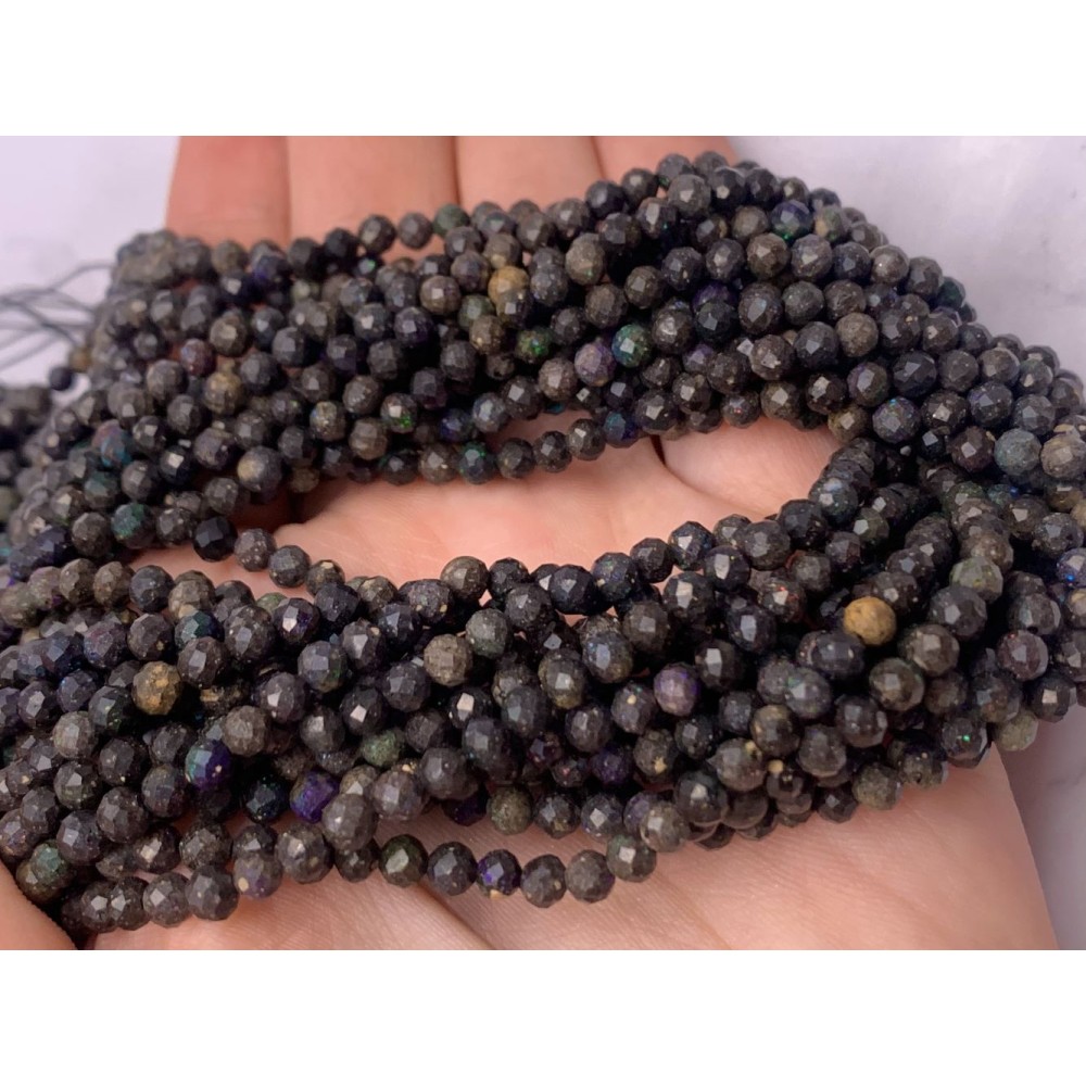 Каменные бусины, Эфиопский Чёрный Опал, матричный, шарик огранка, 4 мм, длина нити 38 см