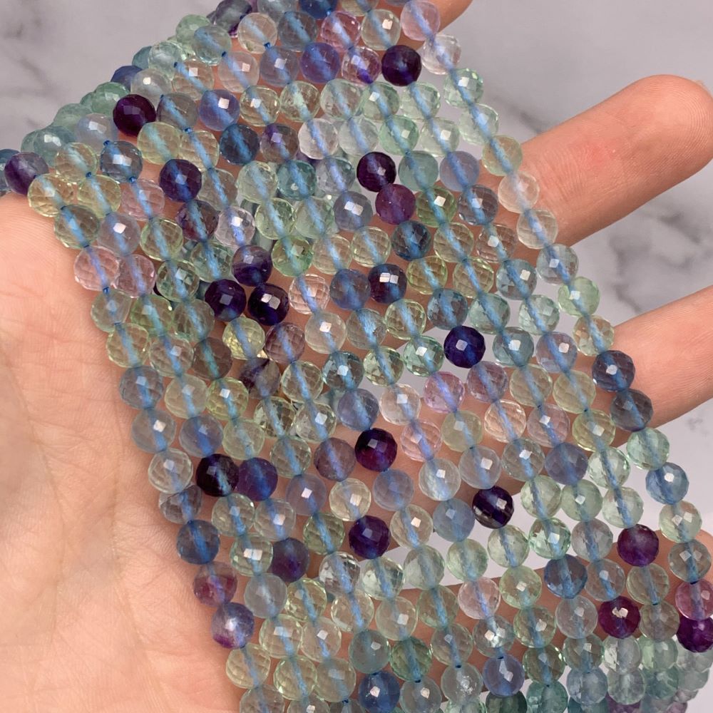 Каменные бусины, Флюорит, люкс, ювелирная огранка, шарик 6 мм, длина нити 38 см