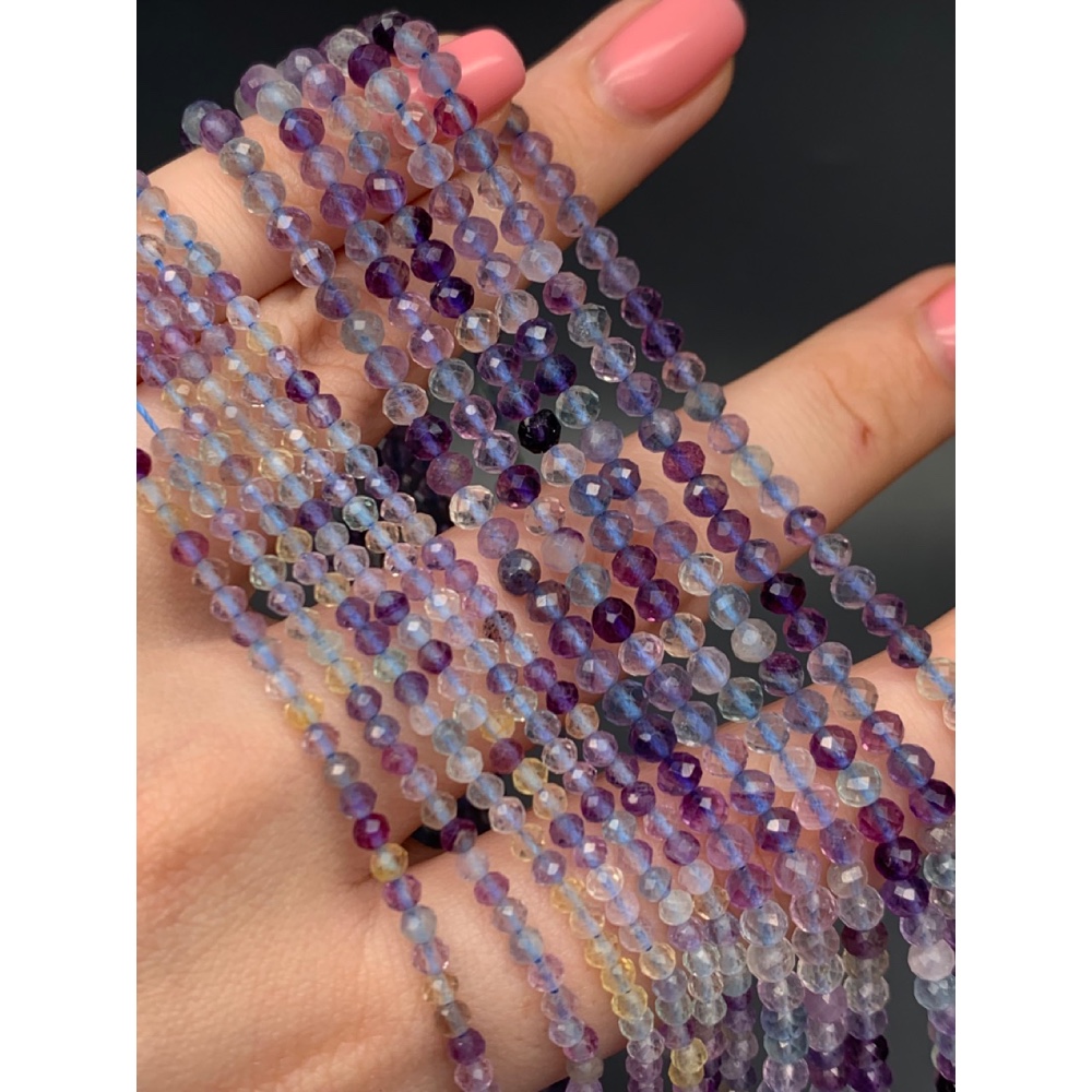Каменные бусины, Флюорит, люкс, огранка, шарик 3 мм, длина нити 38 см