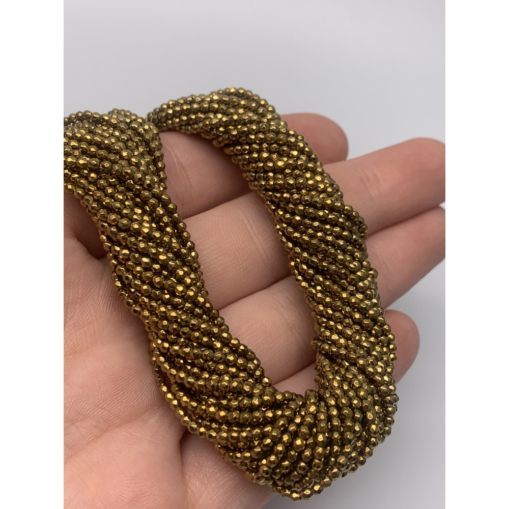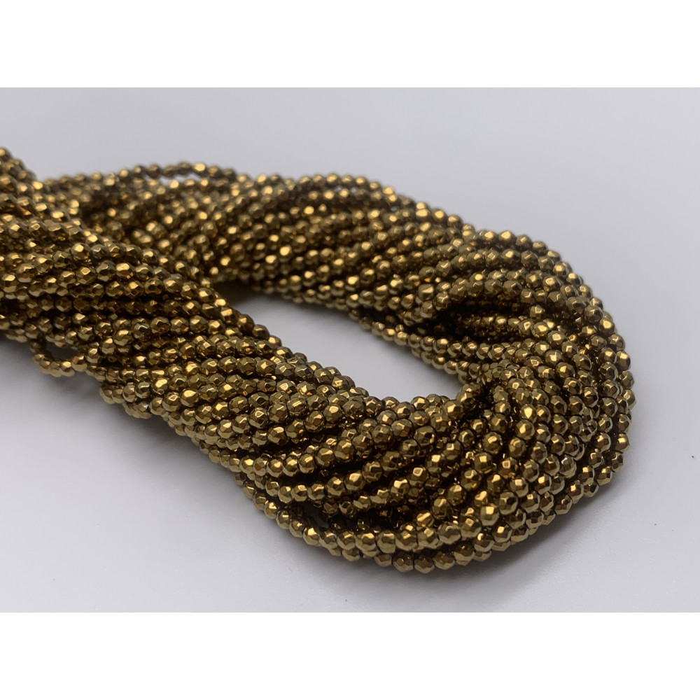 • Каменные бусины, Гематит синтетический, золото, шарик огранка, размер 2 мм, нить 38 см