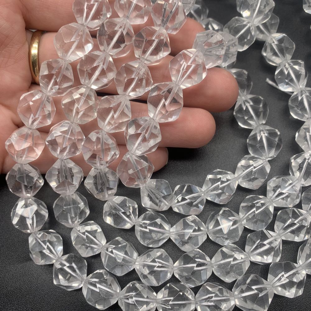 • Каменные бусины, Горный Хрусталь, люкс, крупная огранка 14 мм, длина нити 38 см
