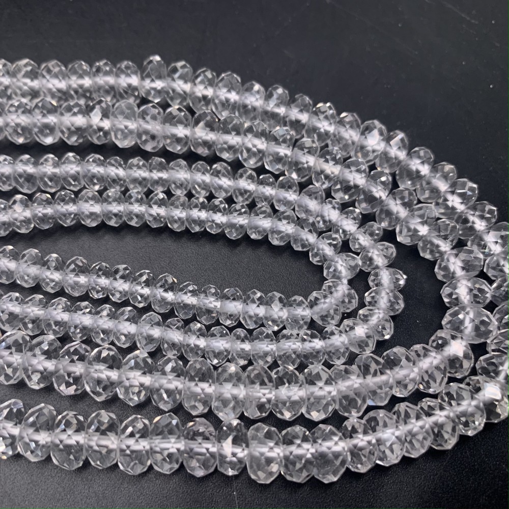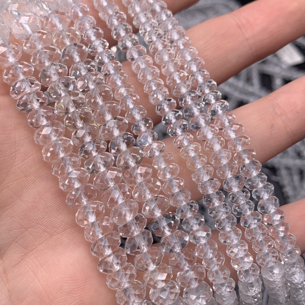 • Каменные бусины, Горный Хрусталь, люкс, рондель, ювелирная огранка, 6х3 мм, длина нити 38 см