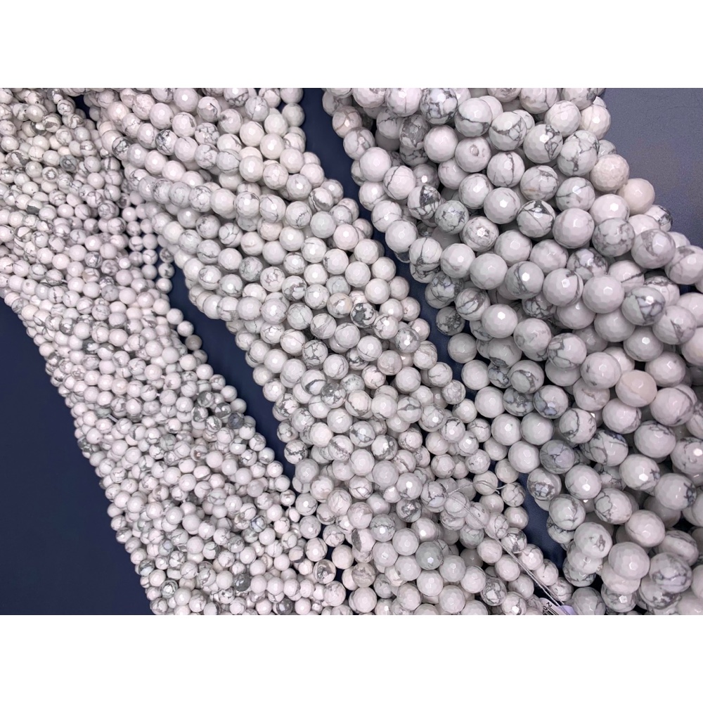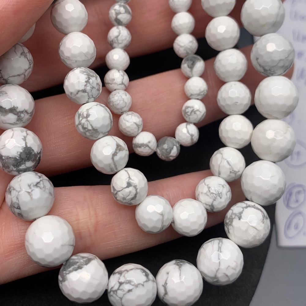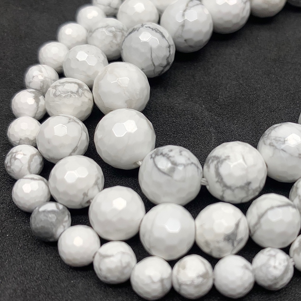 Каменные бусины, Говлит натуральный (т.н. Кахолонг), шарик огранка, 10 мм, длина нити 38 см