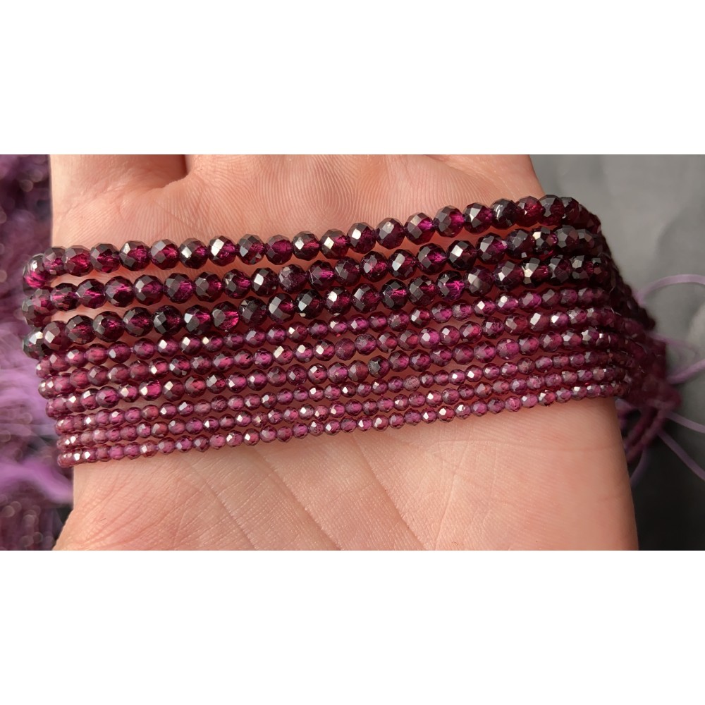 Теги: Каменные бусины, Гранат Альмандин, люкс, шарик огранка, 2 мм, длина нити 38-39 см, 13353, Бусины в огранке 2-4 мм