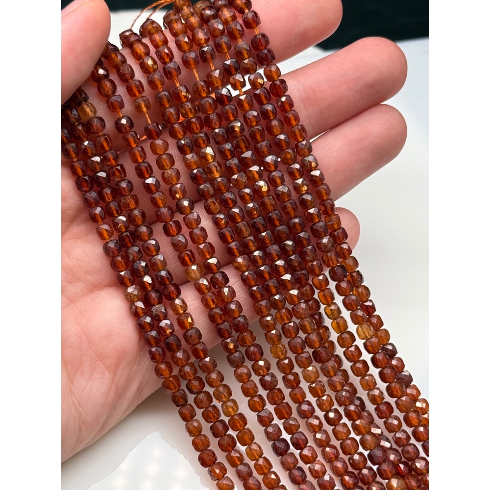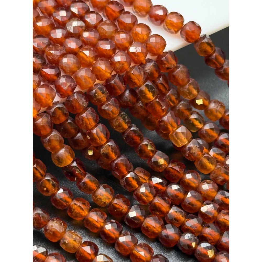 • Каменные бусины, Гранат, Гессонит, Люкс, кубик, огранка, 4х4 мм, длина нити 39 см