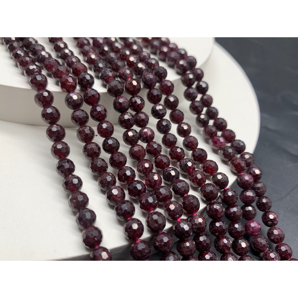 Теги: Каменные бусины, Гранат, шарик огранка, 6-6, 5 мм, длина нити 38 см, 13633, Бусины в огранке