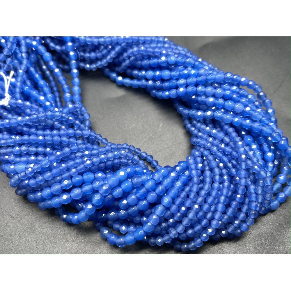 Каменные бусины, Халцедон, голубой, люкс, тонированный, шарик, огранка, 2 мм, длина нити 38 см