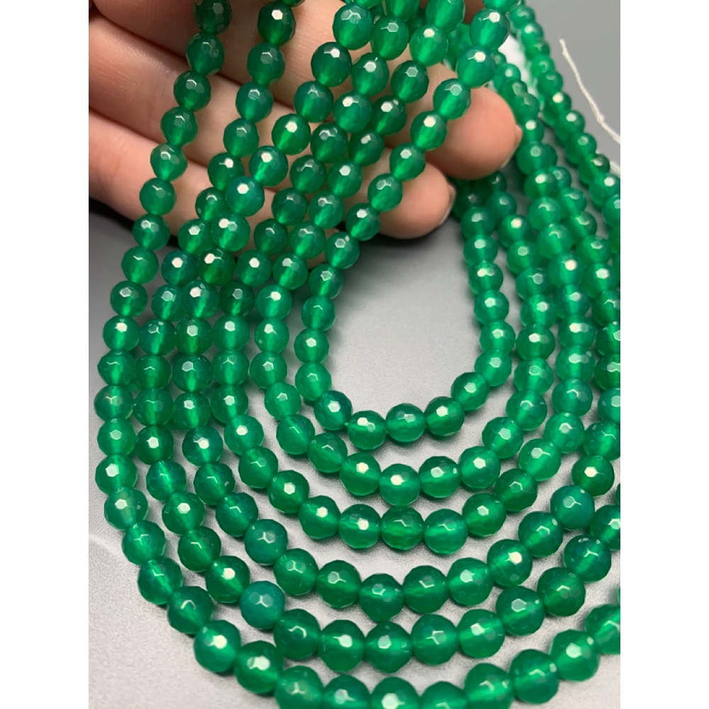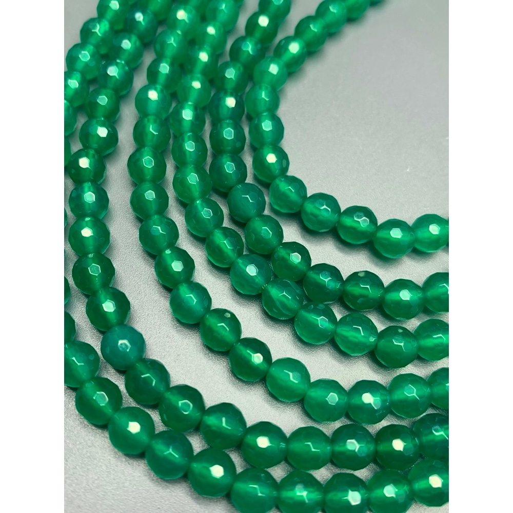 Каменные бусины, Халцедон, изумрудный, тонированный, шарик огранка, 6 мм, длина нити 38 см