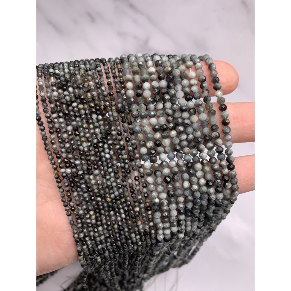Каменные бусины, Хризоберилл, Кошачий глаз, серый, шарик огранка, 3 мм, длина нити 38 см