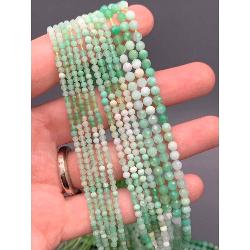 • Каменные бусины, Хризопраз, люкс, шарик огранка, 3 мм, длина нити 38 см