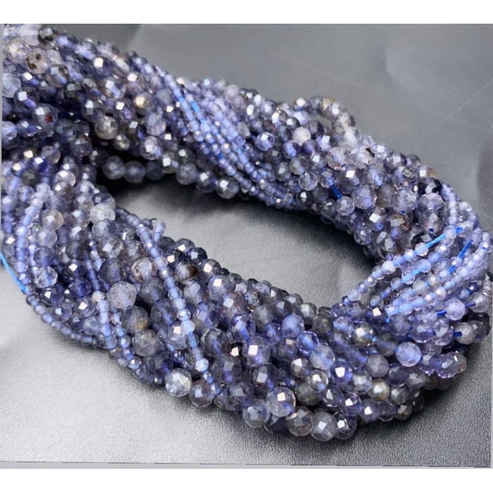 Каменные бусины, Иолит, Водяной Сапфир, шарик, огранка, 2 мм, длина нити 38 см