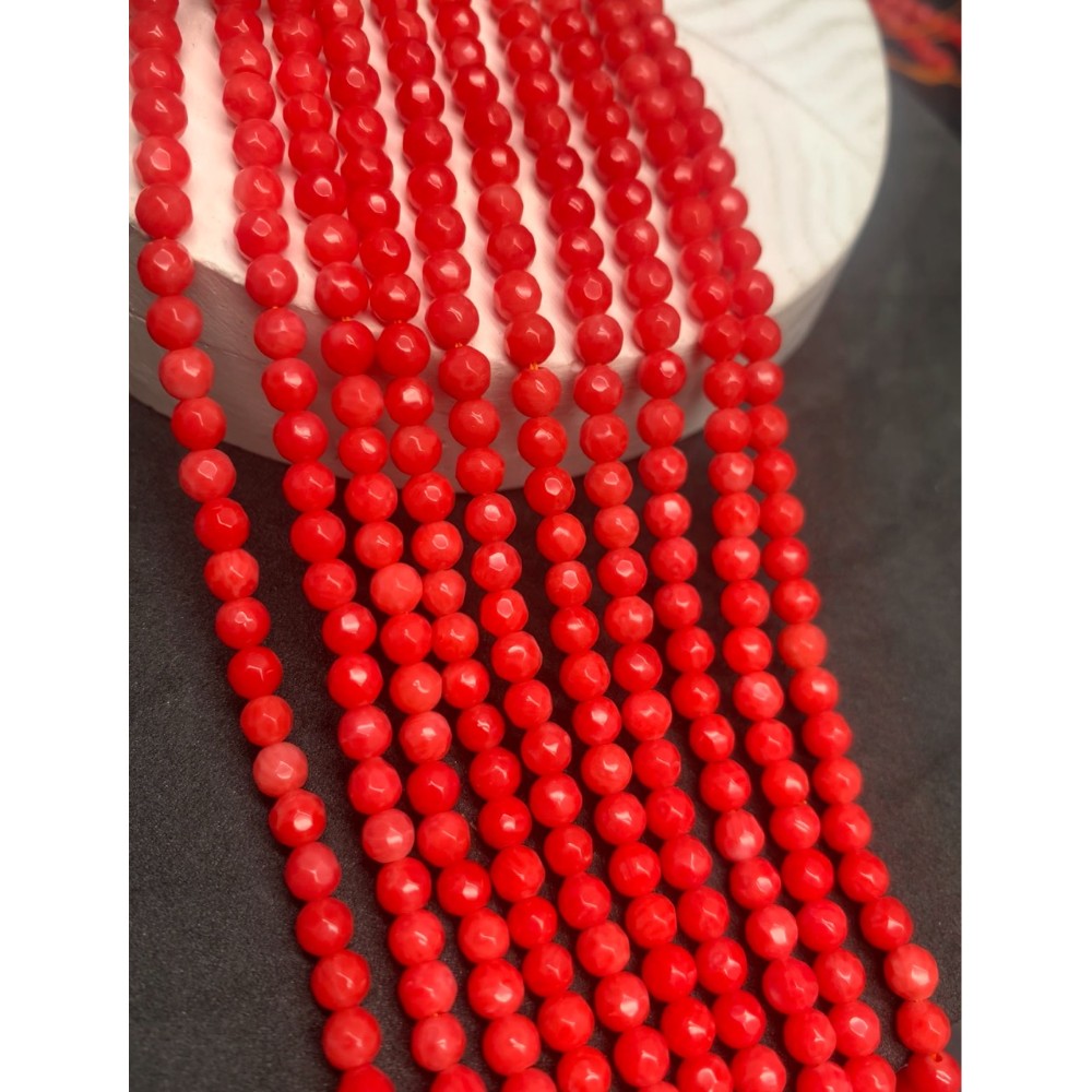Каменные бусины, Коралл, ярко оранжевый, лососевый, тонированный, шарик огранка, 4 мм, длина нити 38 см