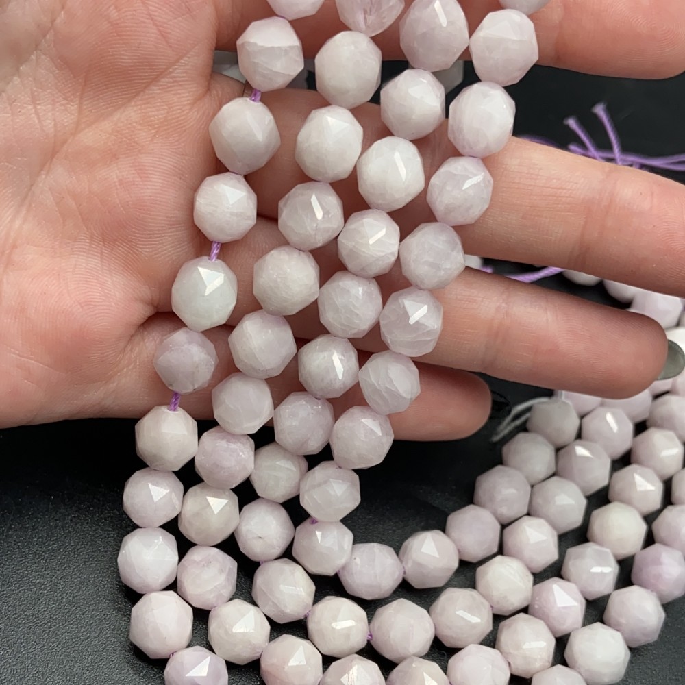 Каменные бусины, Кунцит, люкс, шарик, в крупной огранке, 8,5 мм, нить 38 см