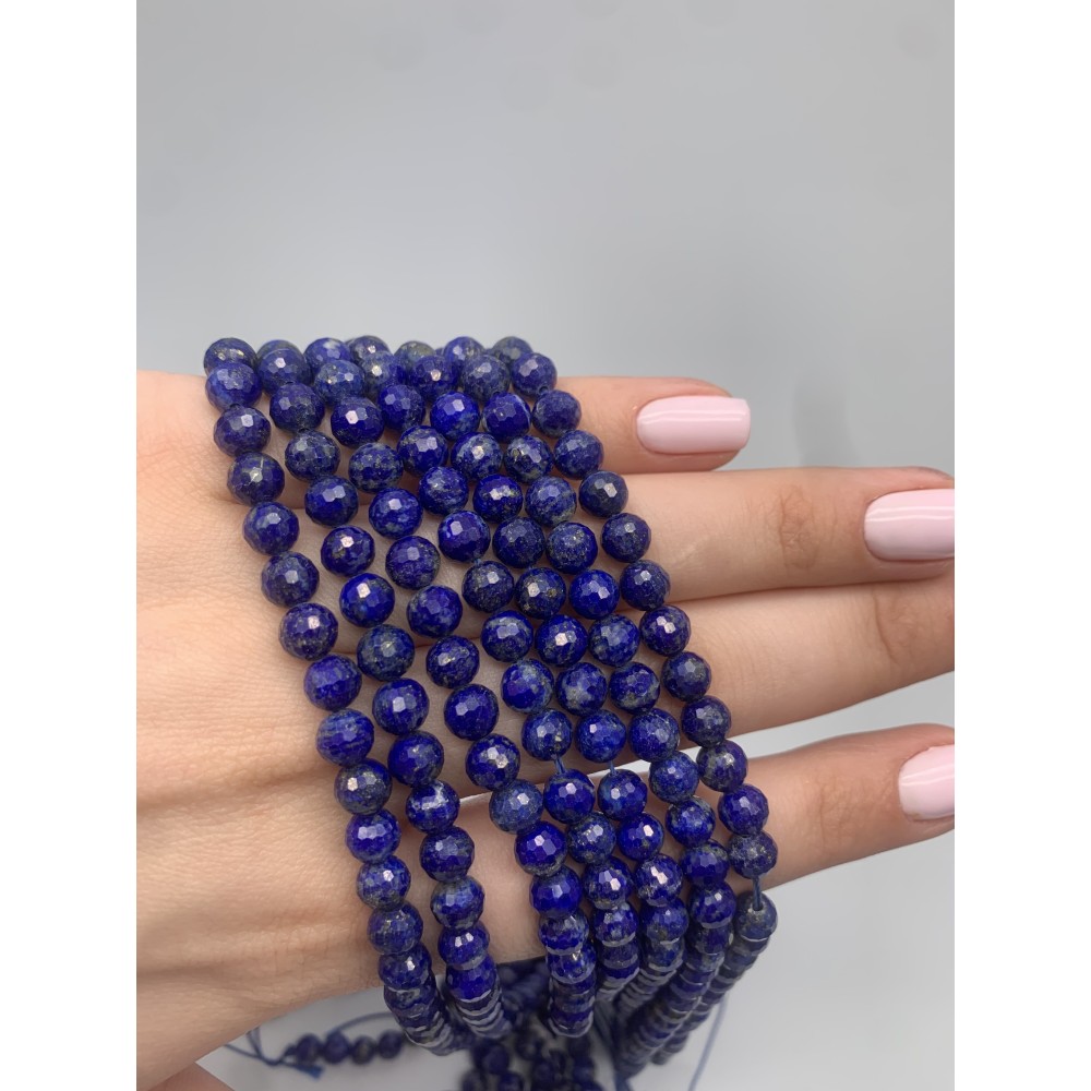 Каменные бусины, Лазурит, шарик огранка, 6 мм, длина нити 38 см