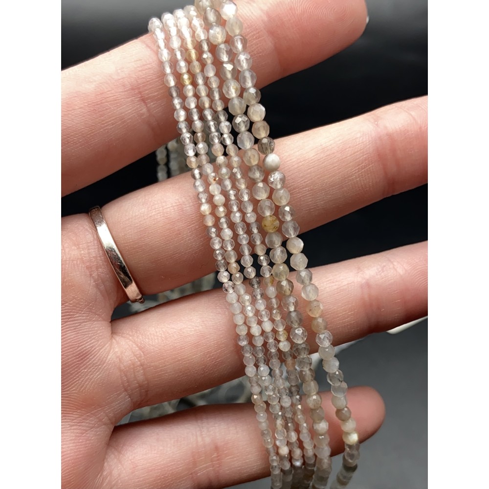 Каменные бусины, Лунный камень, (Индия), шарик огранка, 2 мм, длина нити 38 см