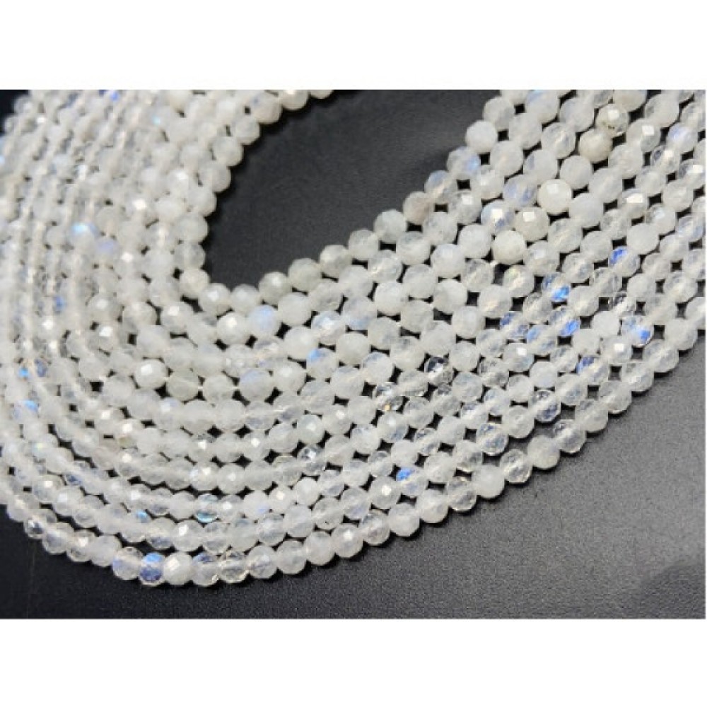 • Каменные бусины, Лунный камень, шарик огранка, 3 мм, длина нити 38 см